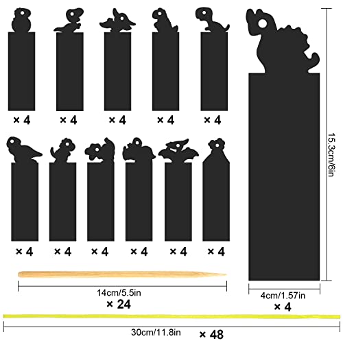 Wisdom1674 Segnalibri Scratch, 48 Pezzi Scratch Art Segnalibro Bambini, Segnalibro Scratch Dinosauro con Penna in Legno e Corde Colorate, per Bambini Regalo Feste, Studenti, Fai da Te
