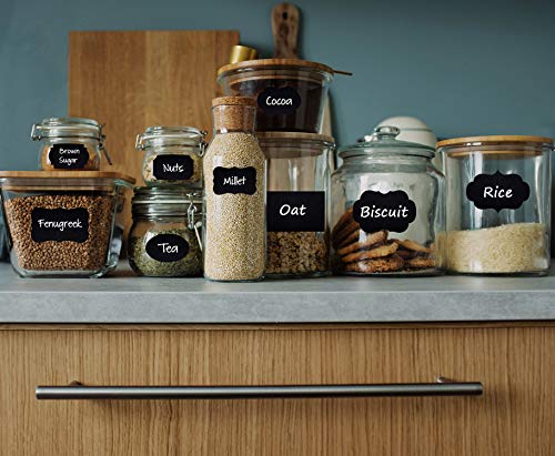 Qualità Premium: realizzate in vinile resistente, le etichette sono impermeabili, autoadesive e di lunga durata. Viene fornito con 2 pennarelli a gesso. Non c'è bisogno di acquistare un pennarello a gesso.
