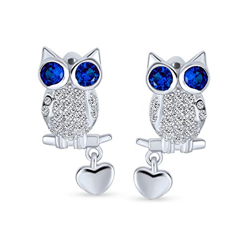 Wise Graduate Lucky Sitting Branch Orecchini per borchie gufo per le donne Big Blue Eye Cubic Zirconia CZ Heart Charm 925 Sterling Silver