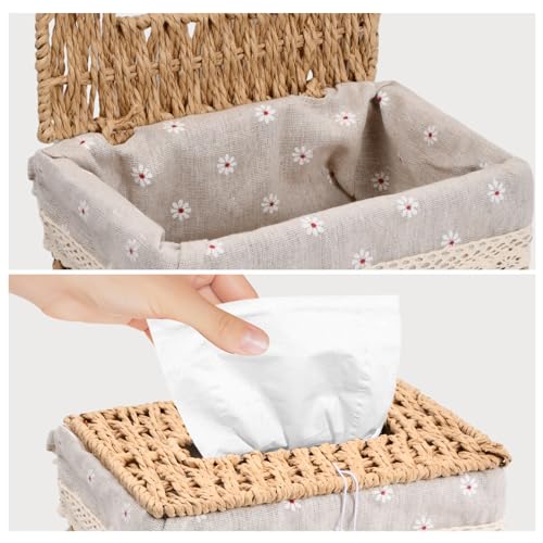 Wisebom Custodia per Scatola per Fazzoletti in Rattan Domestico Rettangolare Carta Velina Porta Scatola per Fazzoletti di Carta per Bagno Camera da Letto Ufficio( 24x14x10cm)