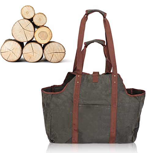 MATERIALI DI ALTA QUALITÀ: La borsa porta legna da ardere è realizzata in tessuto di tela di alta qualità, resistente, robusta e leggera per uso esterno e domestico.