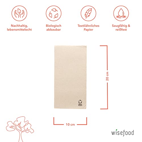Wisefood Tovaglioli di carta, 50 pezzi, rettangolari marrone naturale, 20 x 10 cm, 2 veli, 1/8, pieghevoli, per feste, compleanni, celebrazioni