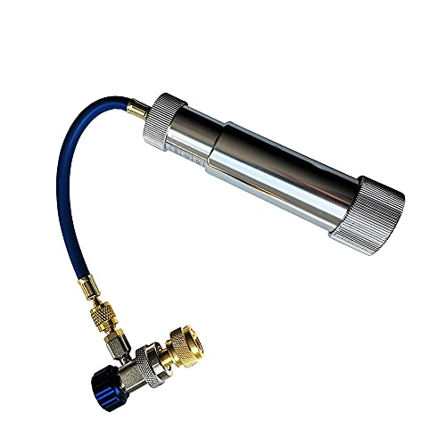 Kit di iniettore di olio e colorante professionale per iniettare olio e colorante attraverso il lato di aspirazione a bassa pressione nel compressore del condizionatore d'aria. Include 2 pezzi Checker olio laterale basso.