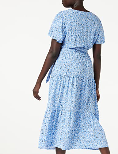 WISFRUIT Maxi abito estivo floreale casual da donna avvolgente scollo a V manica corta svolazzante una linea Boho Flowy cintura abiti, a-blu, S
