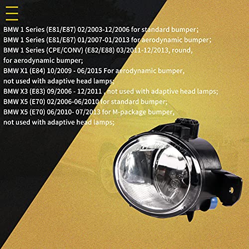 WISGOL Fendinebbia adatto per BMW 1 Series (E81/E87) 03-06 for aerodynamic bumper 07-13 X5 (E70) 06-10 for M-package E70 10-13 X3 E83 06-11 X1 E84 09-15, un paio di fari fendinebbia, lenti chiare H11
