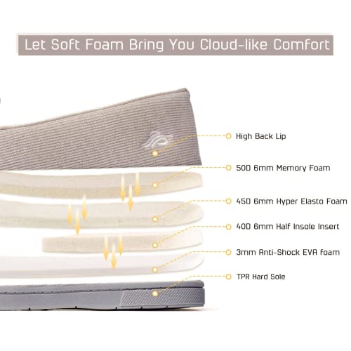Wishcotton Pantofole da donna, leggero, morbido confortevole e traspirante, Memory Foam con suola in gomma antiscivolo, Grigio Chiaro, 38 EU