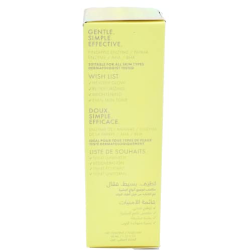 Con estratti di papaia (papaina) e ananas (bromelina) per sfumare la pigmentazione e massimizzare la chiarezza, così come acidi alfa e beta-idrossico (per fondere i legami che legano le cellule morte alla superficie della pelle e purificare qualsiasi congestione integrata).