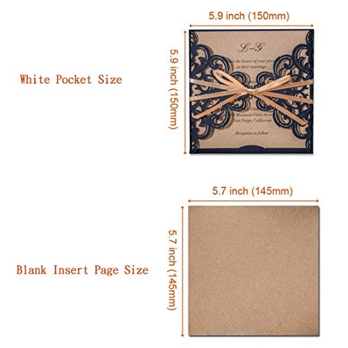 WISHMADE 50X Blu navy Taglio laser Wedding Invitations Kit with Ribbon Design Invites Cards for Birthday Party Graduation Baby Shower Quinceanera (set of 50pcs)CW6175B