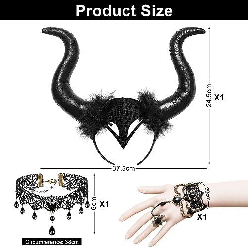 Wishstar Corno Gotico Regolabile Fascia e Colletto in Pizzo Costume Strega malefica Donne Cosplay Puntelli-4