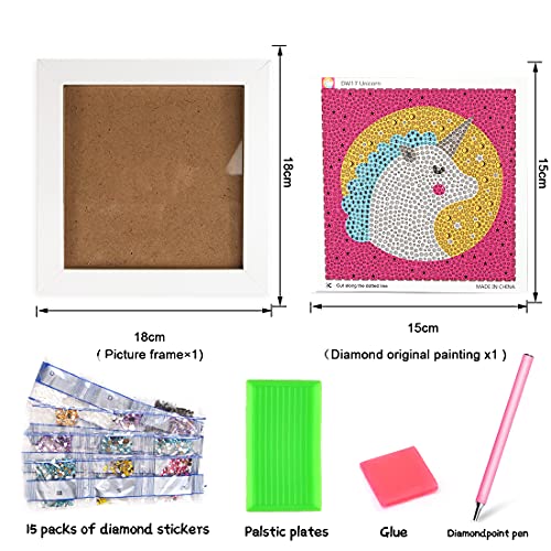 Quadri con pittura diamante set di unicorno: pittura diamante con cornice, tela diamantata (15 cm * 15 cm), diamante rotondo, vassoio, penna per pittura con diamante, colla solida.