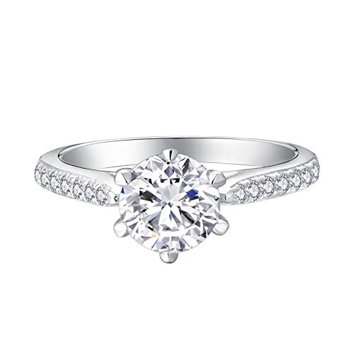 JO WISODM Anelli in Argento 925 Donna,Anello di promessa di Anniversario di Matrimonio di Fidanzamento con 7mm 5A Zirconia cubica Aprile Birthstone