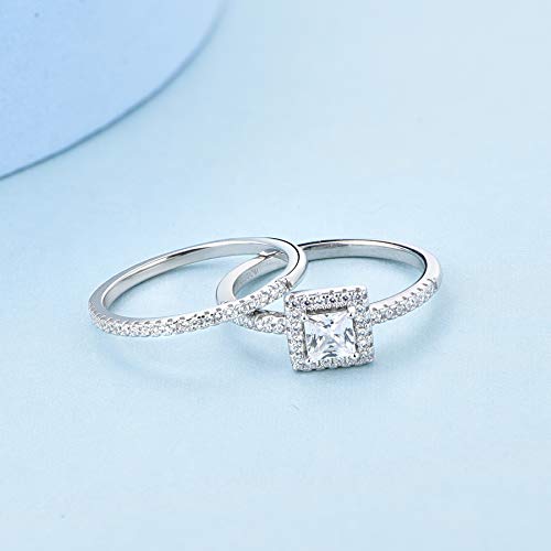 JO WISODM Anelli in Argento 925 Donna,Set da sposa,Anello di promessa di Anniversario di Matrimonio di Fidanzamento con Zirconia cubica 5A taglio principessa 4 * 4 mm