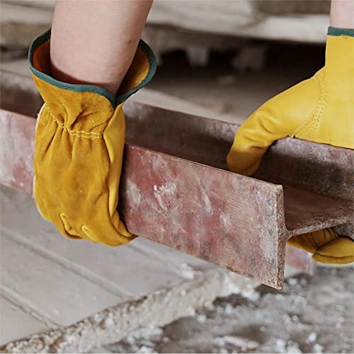 Wisolt Guanti da Lavoro in Pelle, Resistenti Alle Spine per Edilizia, Giardinaggio, Cortile e Riparazioni Auto 2 Paia