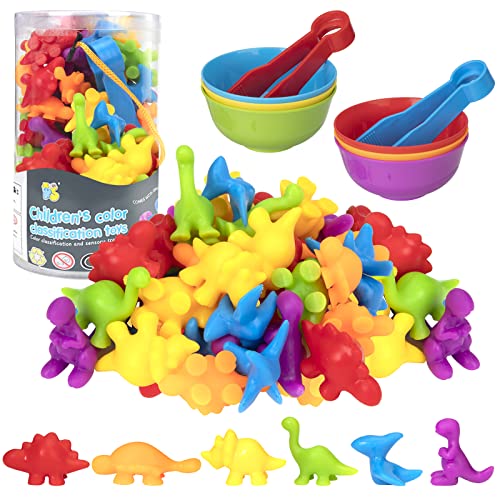 Wisplye Giochi Montessori 2 3 4 Anni, 56 Pezzi Conteggio degli Dinosauro con Ciotola, Pinzette, Gioco di Abbinamento Motricità Fine, Corrispondenza dei Colori, Giochi Educativi Regalo per Bambini