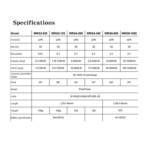 WISRETEC Adattatore di coppia digitale 1.5-1000NM chiave dinamometrica Cinque unità di coppia (RANGE, 135NM)