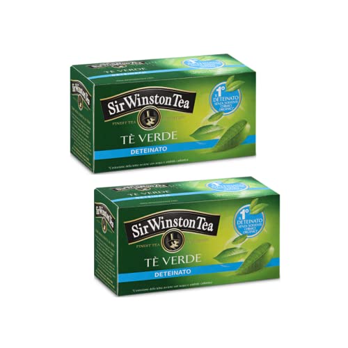 Sir Wiston Tea | Tè Verde Antiossidante Deteinato Senza Solventi Chimici Organici - 2 x 20 Bustine di Tè (70 Gr)