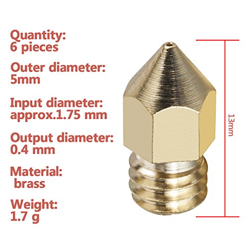 Witasm 6 Pezzi Ugello Estrusore Stampante 3D 0,4mm Nozzle per Makerbot RepRap MK8 Stampante 3D Testina di Stampa in Ottone
