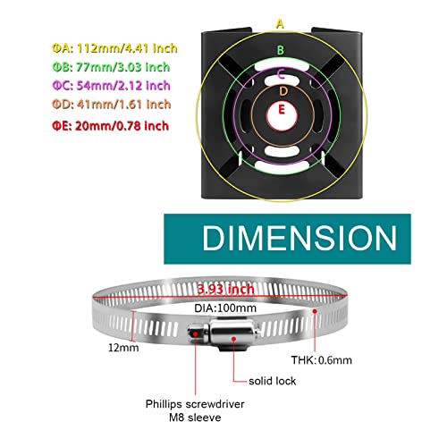 Funziona per palo / tubo tra 45 ~ 100mm.Dimensione: montaggio 118* 112* 54mm, loop Φ45 ~ Φ125mm