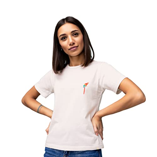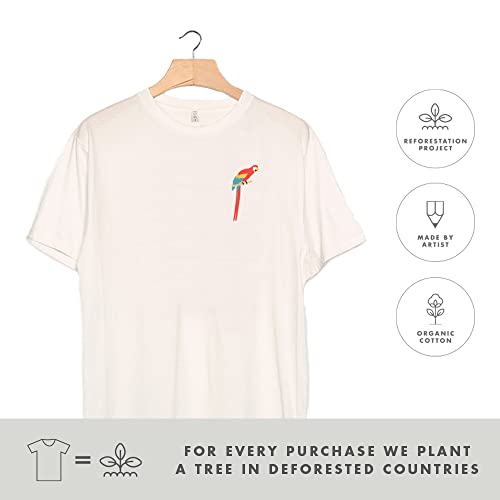 Wituka T-Shirt Manica Corta in Cotone Organico, Abbigliamento Unisex per Uomo e Donna in 5 Taglie, Maglietta Bianca, Modello Parrot