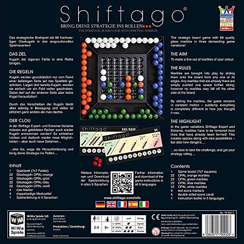 WiWa Spiele 790023 - SHIFTAGO - Metti in moto la tua strategia... (gioco giochi da tavolo gioco di strategia con 88 biglie di vetro (Ø 22 mm) di alta qualità per 2-4 giocatori)