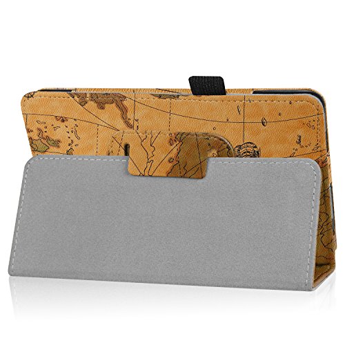 WizFun folio custodia case cover per 8" Samsung Galaxy Tab E 8.0 SM-T377 4G 8 Inch tablet, MapBrown