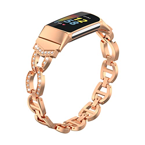 Wizvv Cinturino Compatibile con Fitbit Charge 5 Tracker Glitter Strass Cute Charge 5 Cinturini in Metallo Eleganti Eleganti Bracciali Accessori per Charge 5 Donne e Ragazze-Oro Rosa