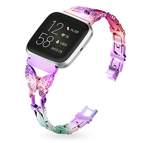 Wizvv Metal Cinturino compatibile con Fitbit Versa 2 Lite SE Butterfly Cute Shiny Jewelry Cinturino in metallo di ricambio rapido alla moda color