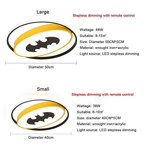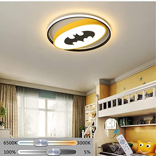 WJLL Plafoniera A LED Per Bambini Lampada Da Soffitto Creativa Batman Dimmerabile Con Telecomando Acrilico Ultra Sottile Per Bambini Camera Da Letto Soggiorno Lampadario Decorativa Giallo,40cm38W