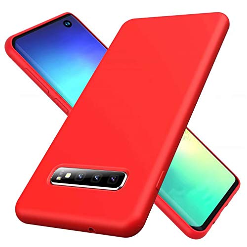 WJMWF Compatibile con Custodia Samsung Galaxy S10 Ultra Slim Liquido Silicone Gel Case Cover [Proteggi Schermo] Anti-Scratch Shockproof Telefono Caso-Rosso