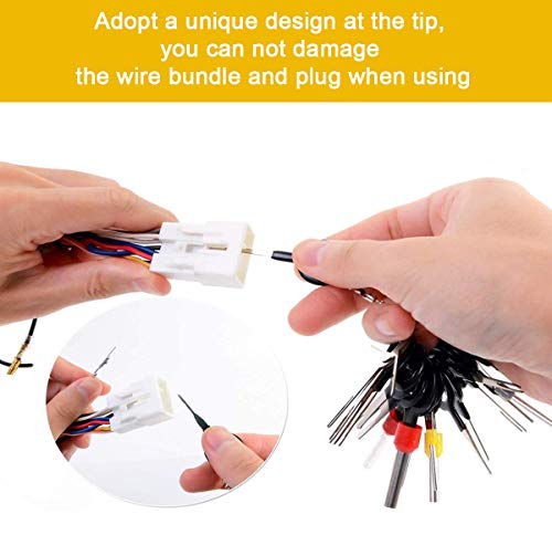 Funzione principale: questo kit di rimozione terminali per auto è progettato per rimuovere un cavo intatto da un set di cavi dispenser e aggiungere facilmente un nuovo filo. È possibile attendere il cablaggio originale del produttore e collegare il proprio dispositivo elettronico senza danneggiarlo