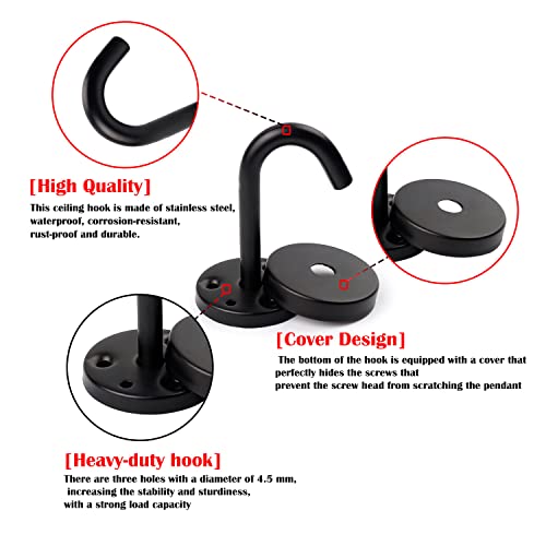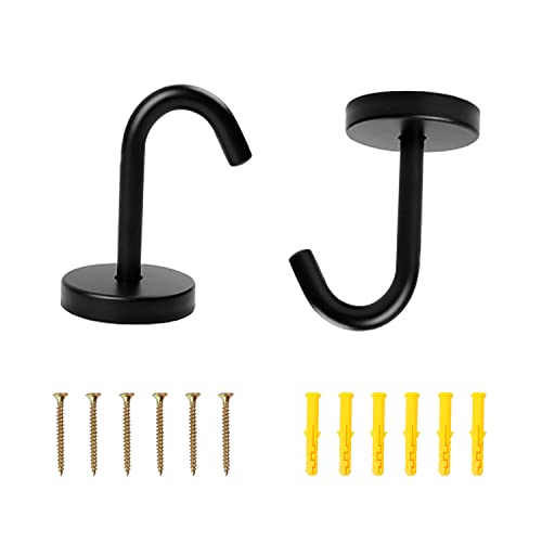 WJUAN Gancio a Soffitto, 2 Ganci Multiuso in Acciaio Inox Nero, Ganci da Parete per Appendere Casette per Uccelli, Ventilatori a Soffitto, Zanzariere, Lanterne