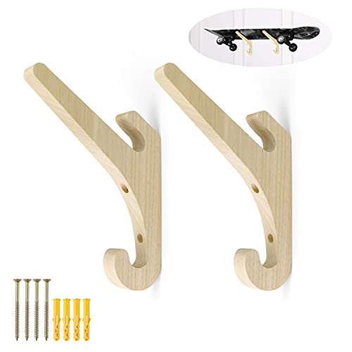 WJUAN 2 pezzi 9,8 pollici Longboard a Parete Porta Skateboard, Ganci Multiuso in Legno, Design a tre Ganci, Ganci in Legno per Appendere Skateboard, Racchette e Mazze da Golf