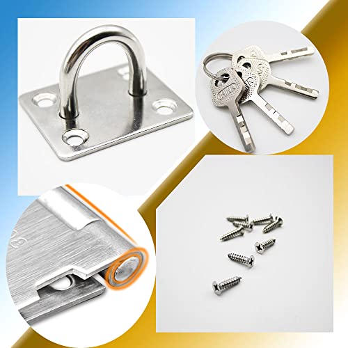 ▶ Riceverai: 1 Lucchetto ad arco lungo (incluse 4 chiavi) e 1 set di padlock hasp (incluse 8 viti).