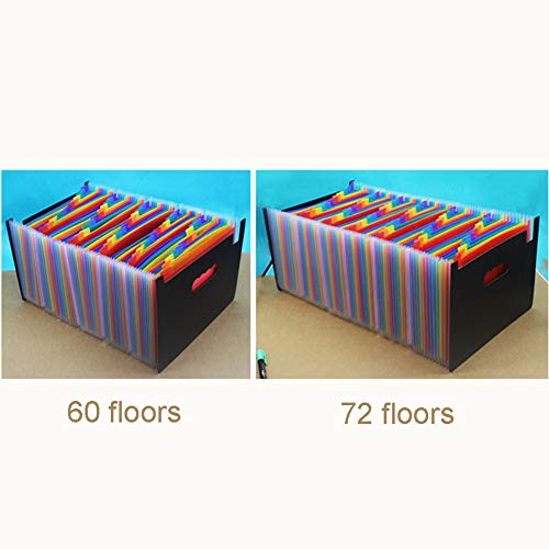 WJYLM Cartella per File espandibile A4, 48 Scomparti Grande fascicolatore Estensibile Arcobaleno in plastica Cartella Portadocumenti per Documenti a Fisarmonica,Nero,72Floors