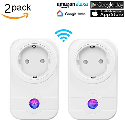 WLAN - Presa wireless intelligente con telecomando, compatibile con Amazon Alexa, Echo ed Echo Dot, per iOS e Android, con controllo vocale, funzione timer, 2 pezzi