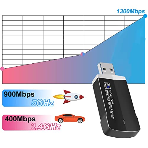 WLAN Stick, adattatore WiFi WiFi WiFi 1300 Mbps PC USB 3.0 Dual Band 5 GHz/2.4 GHz, antenna integrata High Gain 5dBi per PC Windows/XP/7/8/8.1/10/11 Desktop/Laptop/Plug and Play