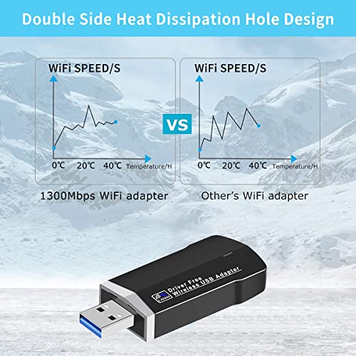 chiavetta wifi, adattatore wifi adattatore wifi adattatore wifi 1300 Mbit/s pc usb 3.0 dual-band 5GHz 2.4GHz, Antenna integrata High Gain 5dBi per PC Windows XP 7 8 8.1 10 11 Desktop Laptop Plug and Play