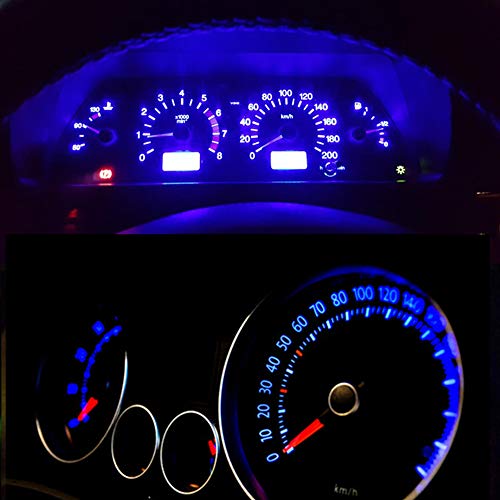 Ogni lampadina ha un singolo chip LED 3030 3SMD che garantisce un'elevata emissione luminosa e una maggiore durata. Tensione di funzionamento: 12 V, dimensioni: 1,7 x 0,5 cm, colore: blu.