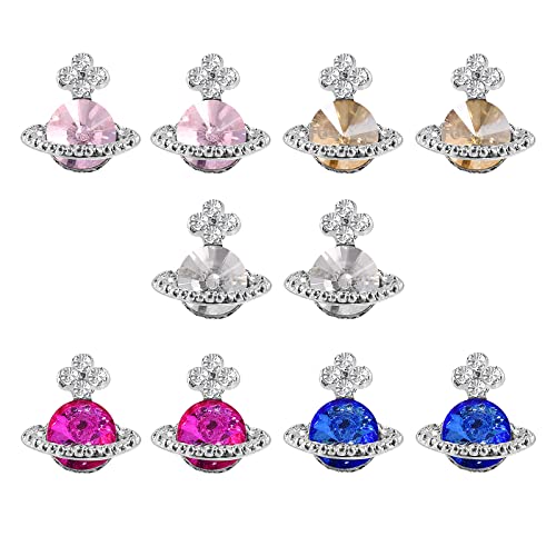 WLLHYF 10Pz Pianeta Unghie Strass Charms Lega Diamante Cristallo Lusso Unghie Charms 3D Lucido Forma Saturno Nail Art DIY Crafts Nail Art Accessori per Donne Ragazze