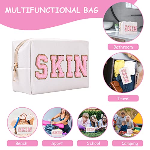 Design minimalista: borsa per cosmetici con grandi lettere "SKIN" con finiture dorate, motivi personalizzati e bellissimi colori può essere abbinata a vari stili di abbigliamento, che possono farti sentire bene e mostrare la tua personalità