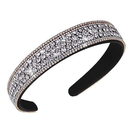 WLLHYF Cerchietto per capelli spesso alla moda nero scintillante Bling Head Wrap anni '90 accessori per capelli da discoteca con strass e strass per regali di compleanno per donne da sposa