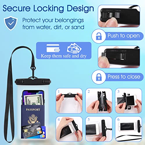 【Dimensioni universali】la nostra custodia impermeabile per telefono è adatta a tutti gli smartphone sotto i 17,5 cm, puoi anche inserire il tuo documento d'identità, contanti, carta di credito, passaporto, chiavi e altri oggetti nella borsa asciutta del telefono per evitare perdite o danni.