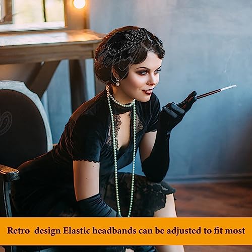 【Materiale di alta qualità】 La superficie degli accessori gotici è fatta di perline e strass, gli accessori da donna degli anni '20 sono fatti a mano, la parte posteriore delle perline è realizzata in materiale di feltro per indossarla comodamente e la fascia di metallo stessa è avvolta in nero tessuto, l'archetto flapper è morbido e pieghevole, creando un affascinante effetto scintillante per te