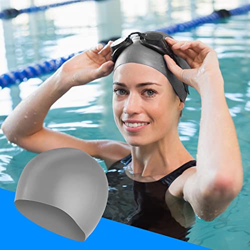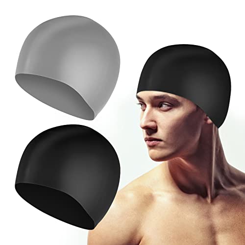 WLLHYF 2 Pezzi Cuffia da Nuoto Unisex Adulto in Silicone Cuffia da Nuoto Impermeabile Estate Antiscivolo Tessuto Elastico Comodo Cappello da Piscina Resistente per Uomo Donna (Nero, Grigio)