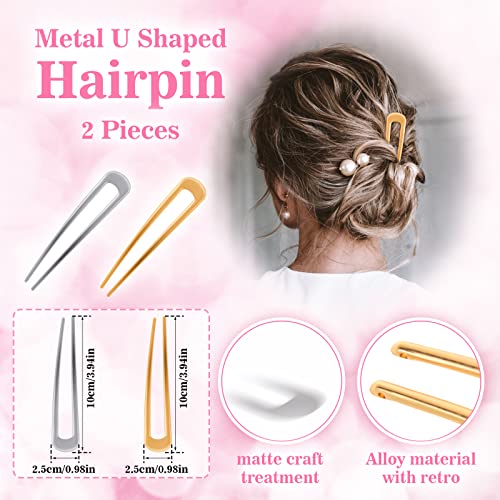 WLLHYF 2 pezzi forcina per capelli a forma di U francese Semplice metallo Vintage guscio di tartaruga Forcella per capelli con due punte Accessori per capelli Chignon per donne ragazze