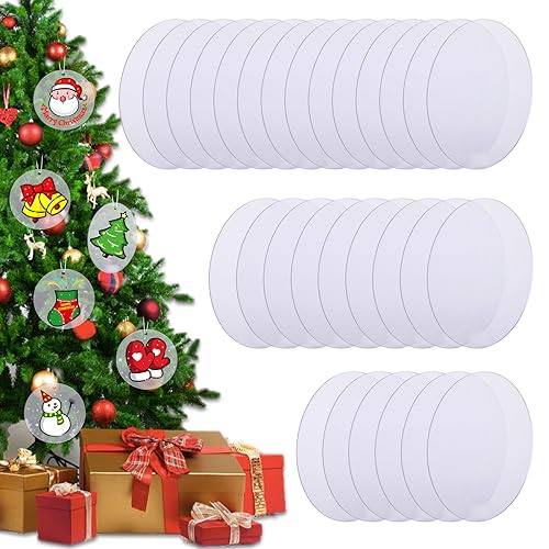 WLLHYF 30 Pezzi 2 Pollici Disco Acrilico Trasparente Cerchio in Plexiglass Fogli Acrilici Rotondi Trasparenti Pittura Bordo Vuoto Ornamenti per Fai da Te Artigianato da Tavolo Halloween Natale