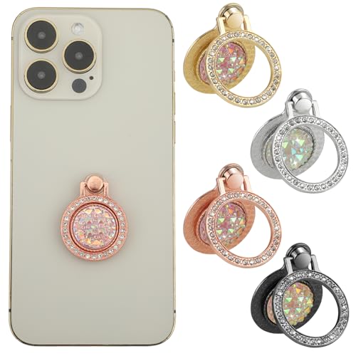 WLLHYF Supporto ad anello per telefono cellulare, confezione da 4 pezzi, rotondo, in metallo, con strass, rotazione a 360 gradi, supporto generico per telefono, supporto da mano per cellulare,