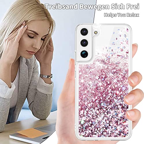 Wlooo Cover per Samsung Galaxy S22, Samsung Galaxy S22 Cover, Glitter Bling Liquido Custodia Sparkly Ragazze Donne Luccichio TPU Silicone Protettivo Morbido Brillantini Quicksand Case (Oro rosa)
