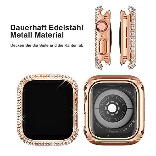 Wlooo Glitter Diamante Cover per Apple Watch Series 6/5/4/SE 44mm, Cristallo Strass Brillanti Ragazze Donne Cover Inossidabile Metallo Protettivo Antiurto Custodia per iWatch Serie 6 SE 5 4 Oro Rosa