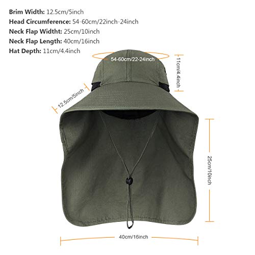 Wmcaps Cappello da Pescatore, Cappellino da Sole a Tesa Larga con Protezione UV Cappelli da Safari Boonie con Patta sul Collo e Rete Traspirante in Spiaggia Estiva All'aperto (Army Green)